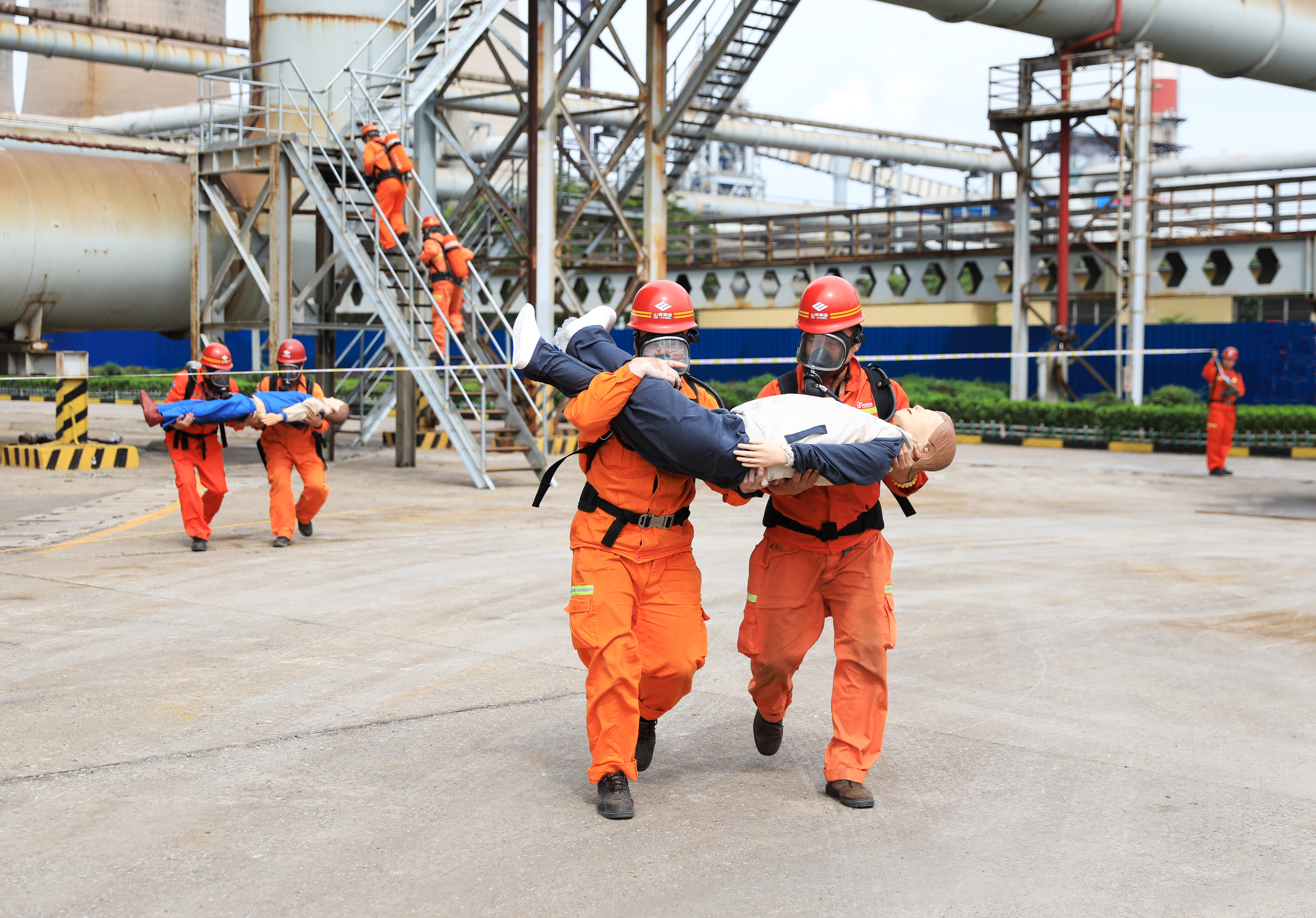 6月份以来,和记娱乐集团各单位围绕“人人讲安全、全员拼效益”主题,紧密结合各自工作实际和“安全生产月”活动要求,深入开展安全培训、应急演练等活动,不断增强职工安全意识和应急处置能力,为安全生产保驾护航。图为6月19日,和记娱乐股份莱芜分公司能源动力厂煤气应急救援中心与型钢燃气车间联合开展煤气系统事故应急救援演练。(刘金波 摄)